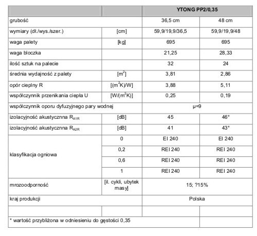 Specjalnie dedykowanym materiałem na ściany jednowarstwowe są bloczki YTONG ENERGO, które dostępne są w dwóch grubościach: 36,5 i 48 cm. Bloczki o grubości 36,5 cm pozwalają wznosić mury, które bez dodatkowej izolacji spełniają zaostrzone normy cieplne dla budynków mieszkalnych. Natomiast YTONG ENERGO o grubości 48 cm nie wymagają ocieplenia nawet przy budowie domów energooszczędnych, gdzie współczynnik przenikania ciepła U musi być mniejszy lub równy 0,20 [W/(m2▪K)].