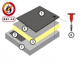 odporność ogniowa warstwowego przekrycia dachowego REI 15, REI 30, REI 45, mocowanie mechaniczne na izolacji termicznej z płyt ze skalnej wełny mineralnej.